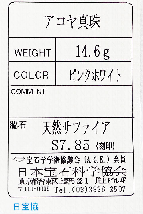 アコヤ真珠 色:ピンクを帯びたクリームホワイトの色合い