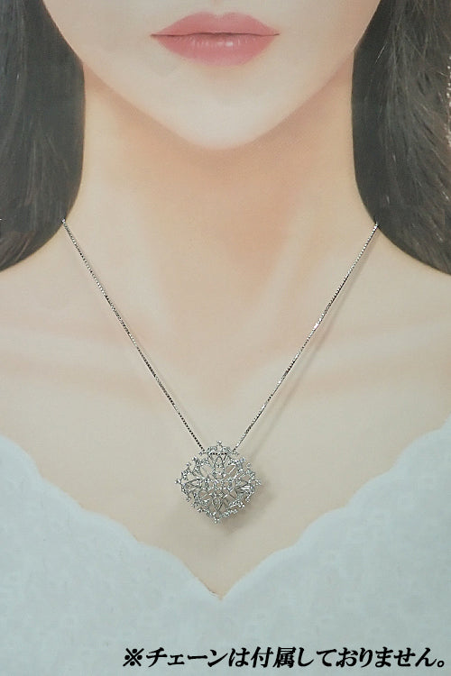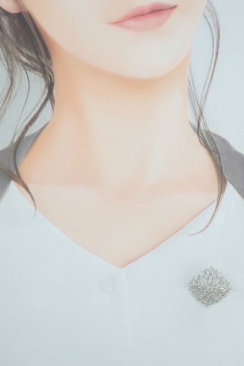 コメント 透かしのデザインにダイヤモンドが散りばめられた上品なブローチです。チェーンを通してネックレスとしてもお使いいただける便利なお品です。