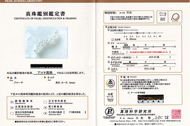 付属品 真珠科学研究所鑑定書(商品写真付き・天女判定)