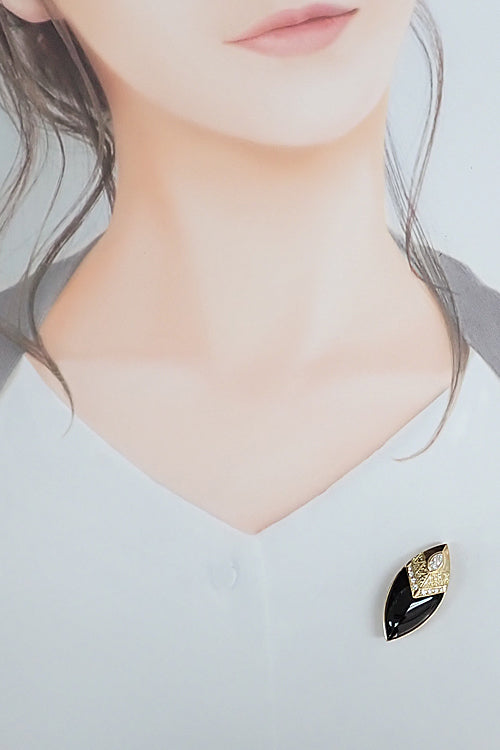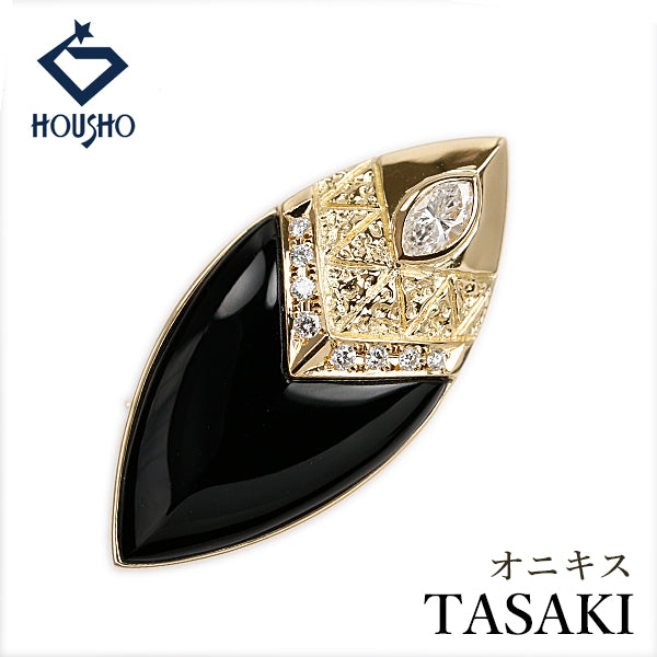 タサキ 田崎真珠 オニキス ブローチ ダイヤモンド ダイヤモンド K18イエローゴールド TASAKI 2way ペンダントトップ マーキスカット ファンシーカット 変形カット【中古】【904812】