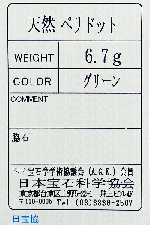 ペリドットの重量 刻印なし