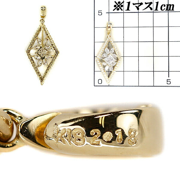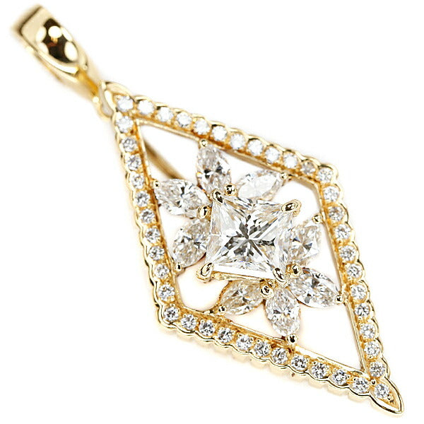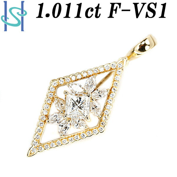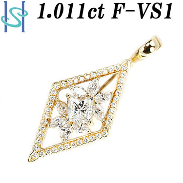 ダイヤモンド ペンダントトップ 1.011ct K18YG 透かし ひし形 グレード付き プリンセスカット スクエアカット 変形カット ファンシーカット | 18金 ダイアモンド ゴージャス かわいい【SH105879】