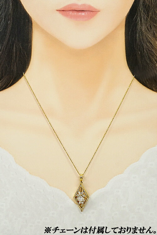 上質なダイヤモンドを贅沢にセットした、透かし模様がエレガントで美しい、ひし形のペンダントトップです