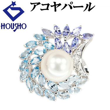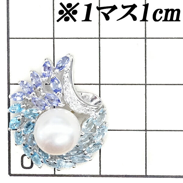 アコヤパール ペンダントトップ 9.2mm タンザナイト トパーズ ダイヤモンド Pt900 透かし | あこや真珠 白真珠 和珠 上品 エレガント かわいい おしゃれ【中古】【SH120815】