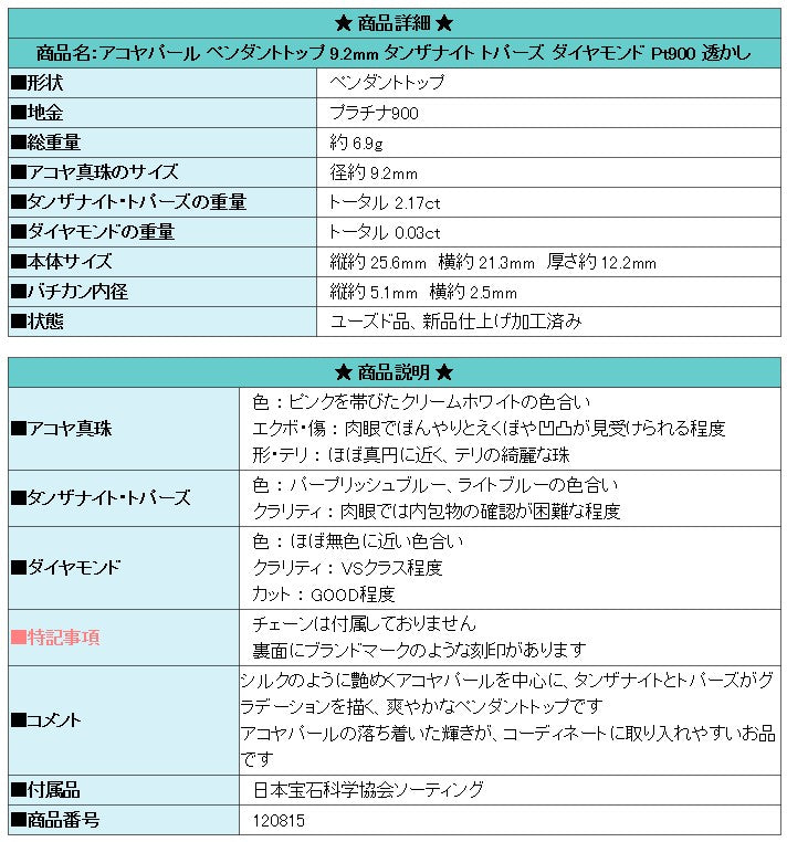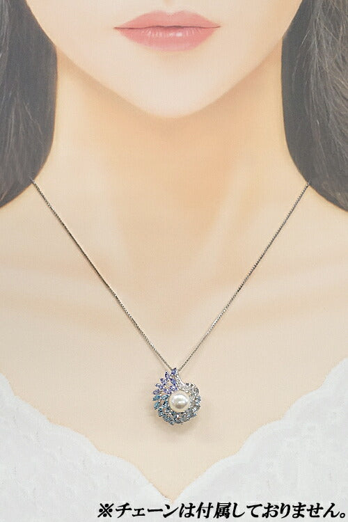 商品名:アコヤパール ペンダントトップ 9.2mm タンザナイト トパーズ ダイヤモンド Pt900 透かし