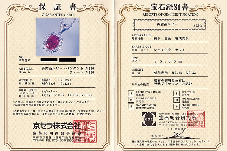付属品 保証書 兼 宝石総合研究所鑑別書(カバー有)