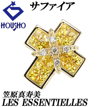 笠原真寿美/レ・エッセンシャル サファイア ペンダントトップ ダイヤモンド K18イエローゴールド KASAHARA MASUMI/LES ESSENTIELLES 作家 デザイナー クロス 十字架 ミステリーセッティング【中古】【903442】