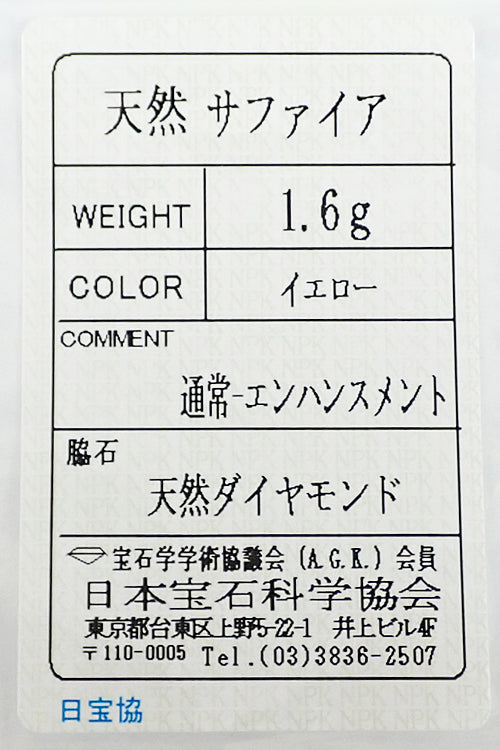 サファイア 色:落ち着いたイエロー