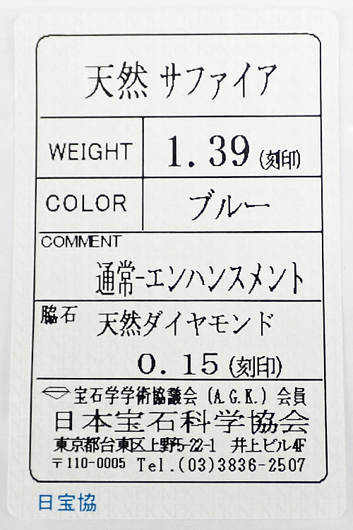 サファイアの重量 1.39ct