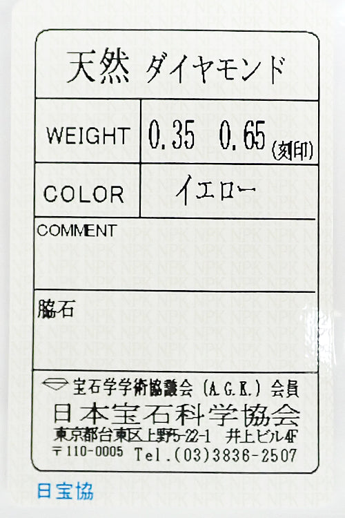 イエローダイヤモンドの重量 0.65ct 0.35ct