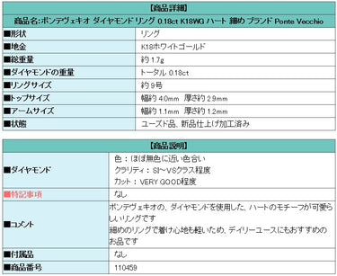 商品名:ポンテヴェキオ ダイヤモンド リング 0.18ct K18WG ハート 細め ブランド Ponte Vecchio