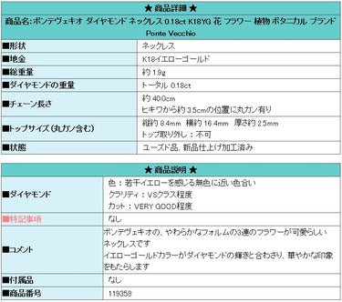 商品名:ポンテヴェキオ ダイヤモンド ネックレス 0.18ct K18YG 花 フラワー 植物 ボタニカル ブランド Ponte Vecchio