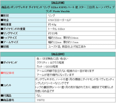 商品名:ポンテヴェキオ ダイヤモンド リング 0.33ct K18YG ハート 星 スター 三日月 ムーン パヴェ ブランド Ponte Vecchio