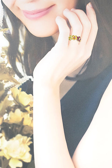 色とりどりに見えますが3種の宝石で構成されているためまとまりがあり、彩りを楽しみたい方にもおすすめな配色のバランスがしっかり考えられた一品です