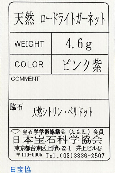 種類 : ロードライトガーネット・シトリン・ペリドット