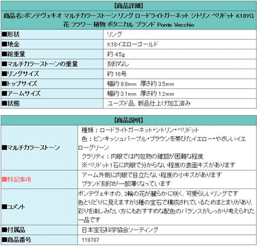 商品名:ポンテヴェキオ マルチカラーストーン リング ロードライトガーネット シトリン ペリドット K18YG 花 フラワー 植物 ボタニカルブランド Ponte Vecchio