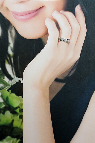 2本のリングを重ね付けしたようなデザインでボリューム感があり、1本のみでも存在感を感じさせる一品です