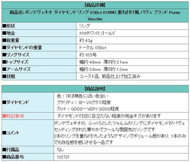 商品名:ポンテヴェキオ ダイヤモンド リング 0.50ct K18WG 重ね付け風 パヴェ ブランド Ponte Vecchio
