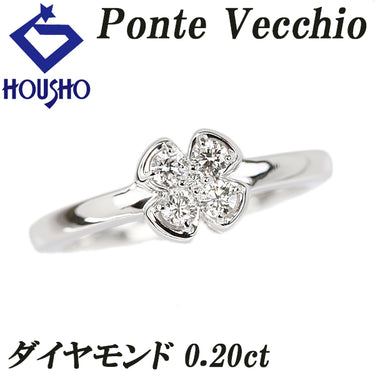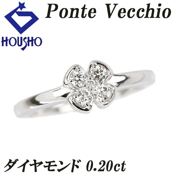 ポンテヴェキオ ダイヤモンド リング K18ホワイトゴールド Ponte Vecchio 花 フラワー 四葉 クローバー 植物 ボタニカル【中古】【903467】