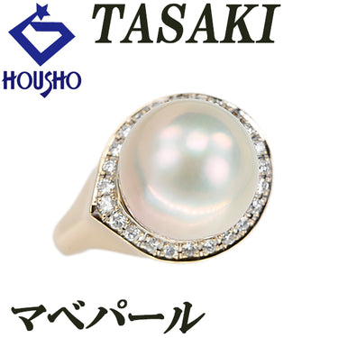 タサキ 田崎真珠 マベパール リング ダイヤモンド K18イエローゴールド TASAKI 幅広 太め【中古】【902406】