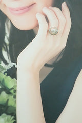 コメント タサキの、マベパールが虹色の美しい光沢を放つ、華やかなリングです。おひとつでラグジュアリーな雰囲気がお手元に広がる、存在感たっぷりのお品です。