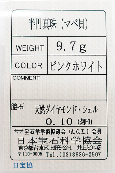 付属品 日本宝石科学協会ソーティング