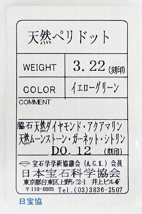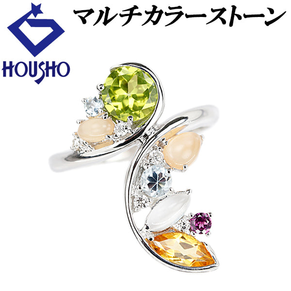 商品名 ペリドット リング ダイヤモンド マルチカラーストーン K18ホワイトゴールド