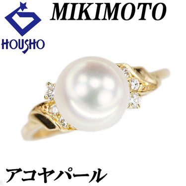 ミキモト アコヤ真珠 リング ダイヤモンド K18イエローゴールド MIKIMOTO 細め【中古】【124364】