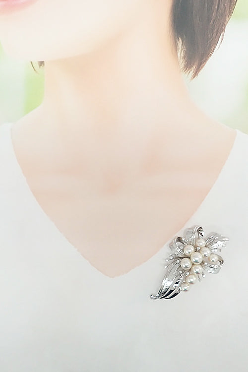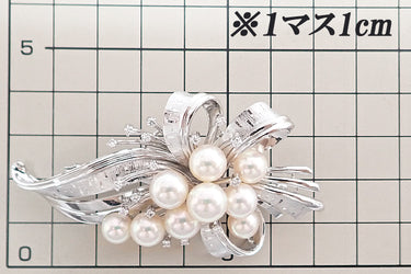 商品名 ミキモト アコヤ真珠 ブローチ ダイヤモンド K14ホワイトゴールド MIKIMOTO リボン 梨地 マット ツヤ消し