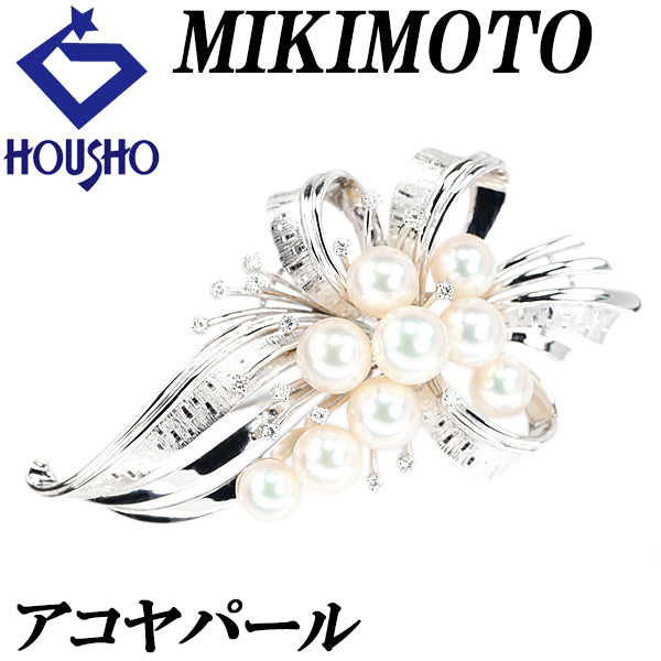 ミキモト アコヤ真珠 ブローチ ダイヤモンド K14ホワイトゴールド MIKIMOTO リボン 梨地 マット ツヤ消し【中古】【902984】