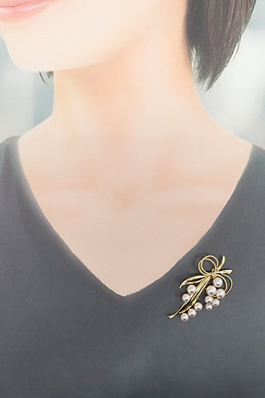 コメント ミキモトの、艶やかなアコヤパールがふんわり華やぐフェミニンな雰囲気のブローチです。動きのあるリボンモチーフがエレガントなお品です。