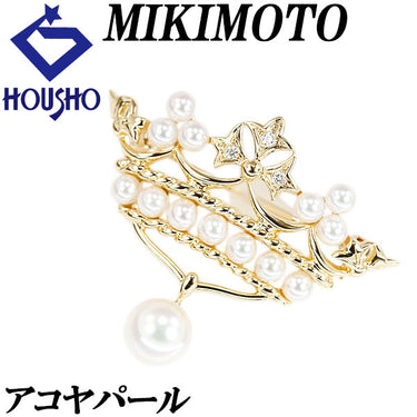 ミキモト アコヤ真珠 ブローチ ダイヤモンド K18イエローゴールド MIKIMOTO 透かし【中古】【903836】