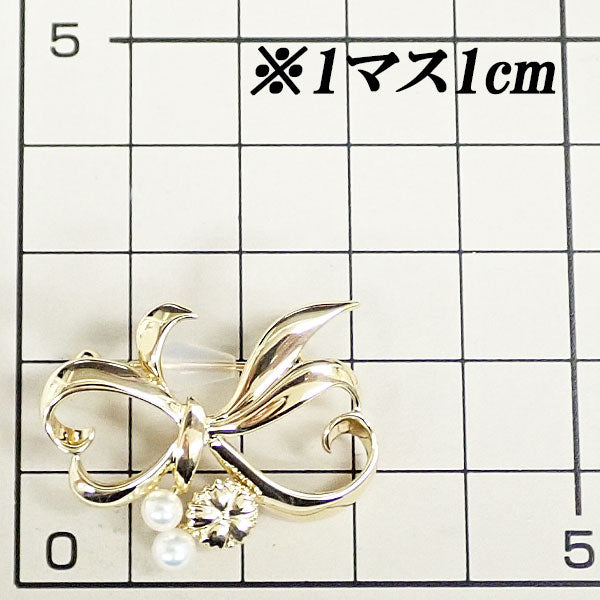 ミキモト アコヤ真珠 ブローチ K18イエローゴールド MIKIMOTO ハート リボン 花 フラワー 植物 ボタニカル ベビーパール【中古】【903839】