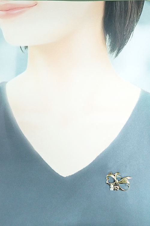 商品名 ミキモト アコヤ真珠 ブローチ K18イエローゴールド MIKIMOTO ハート リボン 花 フラワー 植物 ボタニカル ベビーパール