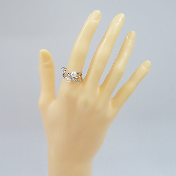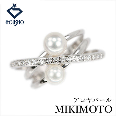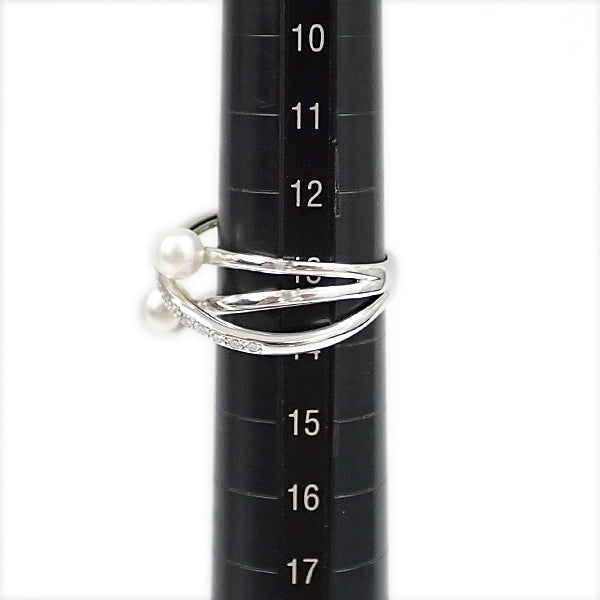 ミキモト アコヤ真珠 リング ダイヤモンド K18ホワイトゴールド MIKIMOTO 重ね付け風 透かし【中古】【904647】