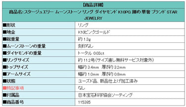 商品名:スタージュエリー ムーンストーン リング ダイヤモンド K10PG 細め 華奢 ブランド STAR JEWELRY