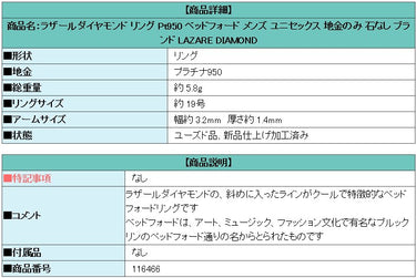 商品名:ラザールダイヤモンド リング Pt950 ベッドフォード メンズ ユニセックス 地金のみ 石なし ブランド LAZARE DIAMOND