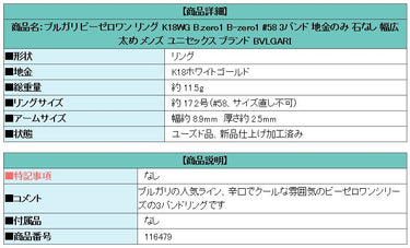 商品名:ブルガリ ビーゼロワン リング K18WG B.zero1 B-zero1 #58 3バンド 地金のみ 石なし 幅広 太め メンズ ユニセックス ブランド BVLGARI