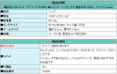 商品名:カルティエ ラブ リング K18PG #60 メンズ ユニセックス 地金のみ 石なし ブランド Cartier