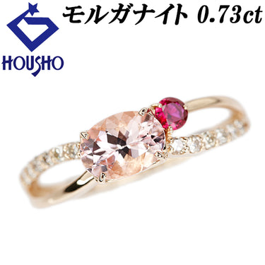 商品名 モルガナイト リング ダイヤモンド ルビー K18ピンクゴールド ダブルライン 透かし