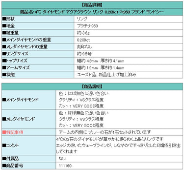 商品名:4℃ ダイヤモンド アクアクラウン リング 0.209ct Pt950 ブランド ヨンドシー