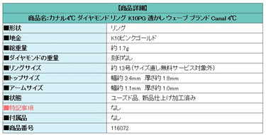 商品名:カナル4℃ ダイヤモンド リング K10PG 透かし ウェーブ ブランド Canal 4℃