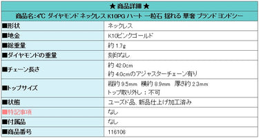 商品名:4℃ ダイヤモンド ネックレス K10PG ハート 一粒石 揺れる 華奢 ブランド ヨンドシー
