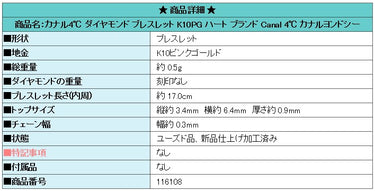 商品名:カナル4℃ ダイヤモンド ブレスレット K10PG ハート ブランド Canal 4℃ カナルヨンドシー