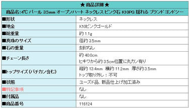 商品名:4℃ パール 3.5mm オープンハート ネックレス ピンク石 K10PG 揺れる ブランド ヨンドシー