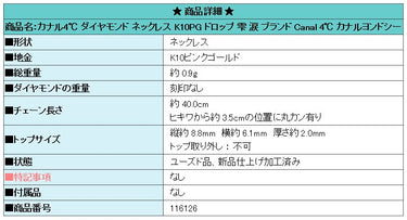 商品名:カナル4℃ ダイヤモンド ネックレス K10PG ドロップ 雫 涙 ブランド Canal 4℃ カナルヨンドシー
