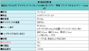 商品名:カナル4℃ ダイヤモンド ネックレス K10WG 花 フラワー 華奢 ブランド カナルヨンドシー Canal 4℃