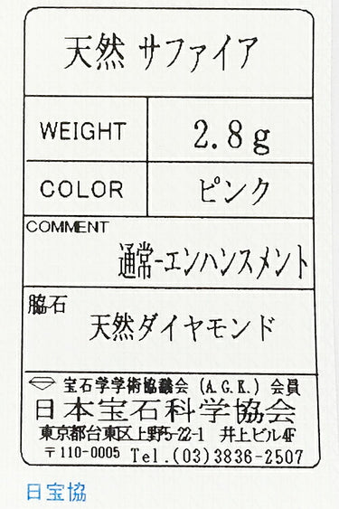 気になることがあったので質問したのですが、すぐ返信があり購入前から安心感がありました。配送も早く、説明通り、鑑定書も付いていて安心しました。今後も入荷をチェックして気にいったものがあれば購入したいと思いました。