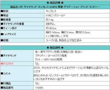 気になることがあったので質問したのですが、すぐ返信があり購入前から安心感がありました。配送も早く、説明通り、鑑定書も付いていて安心しました。今後も入荷をチェックして気にいったものがあれば購入したいと思いました。