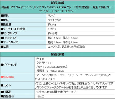 気になることがあったので質問したのですが、すぐ返信があり購入前から安心感がありました。配送も早く、説明通り、鑑定書も付いていて安心しました。今後も入荷をチェックして気にいったものがあれば購入したいと思いました。